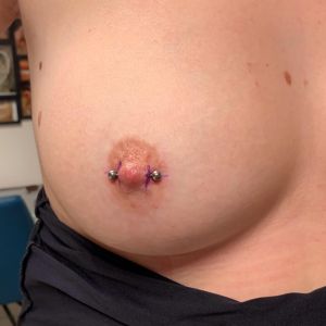 - Het is van belang om ook deze piercing zoveel mogelijk met rust te laten. Gebruik voor het schoonmaken zoutoplossing of door ons verstrekt nazorgmiddel.