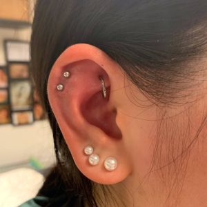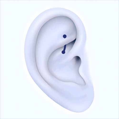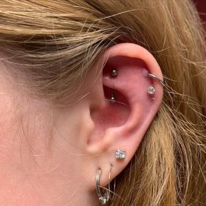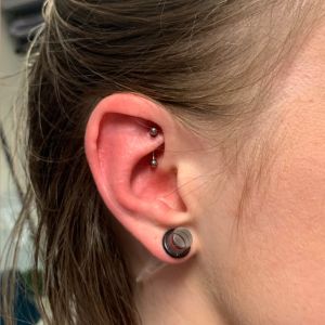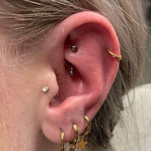 De Rook piercing is een relatief nieuwe piercing. Waarschijnlijk is deze piercing uitgevonden begin jaren 90. De piercing wordt gezet in de kraakbeenplooi die begint aan de voorkant van je oor naast de basis van de helix. Wij zetten deze piercing met behulp van een needle receivingtube en soms moeten we de canulenaald buigen om te zorgen dat de piercing op precies de juiste plek komt. Het sieraad dat we gebruiken bij het zetten is een curved barbell. Zodra de piercing helemaal geheeld is dan kunnen er ook hele mooie ovale ringetjes in gedragen worden.